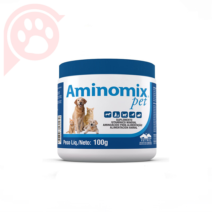 O Suplemento Aminomix Pet é um premix completo de aminoácidos, vitaminas e minerais indicado para cães, gatos, mustelídeos e roedores. Sua formulação de alta qualidade incorpora aminoácidos utilizados nas melhores rações importadas, garantindo suporte nutricional superior para a saúde dos animais.