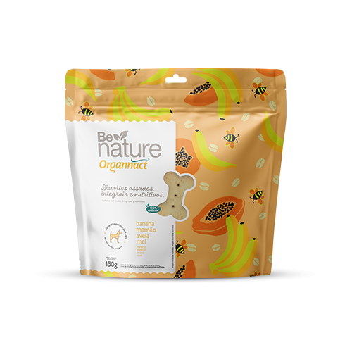 Biscoitos Be Nature Banana, Mamão, Aveia e Mel são petiscos naturais, indicados para cães de todos os portes e idades. Perfeitos para serem oferecidos após as refeições ou como forma de demonstrar carinho e reforçar a obediência, esses biscoitos combinam ingredientes selecionados como banana, mamão, aveia e mel. Nutritivos e saborosos, são uma ótima opção para agradar o seu pet de maneira saudável. Importante lembrar que o produto é um complemento alimentar e não substitui o alimento completo.