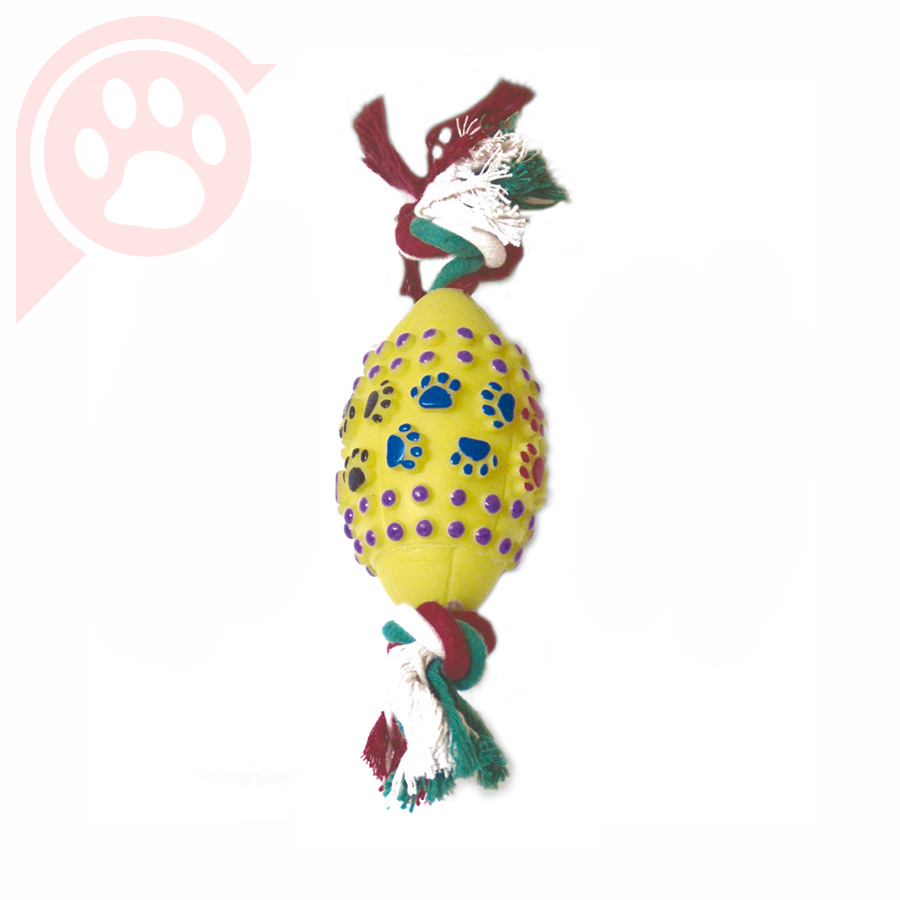 Bola de Futebol Americano é um brinquedo indicado para cães. Produto em vinil, atóxico e lavável com corda.