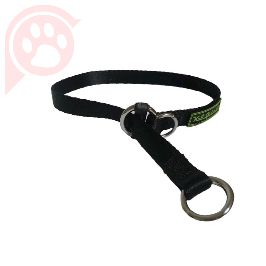 Colar em fita de poliéster com exclusiva barra anti-torção da fita e que possibilita seu travamento, diminuindo os riscos de acidentes com seu cão. Este enforcador não faz barulho na condução, seu formato em fita (e não corda ou metal) distribui corretamente a tensão sobre a região do pescoço (evitando lesão de traquéia) e sua segunda argola permite o travamento do enforcador para cães que vão ficar presos por algum tempo ou mesmo para usar como coleira, travando o enforcador passando uma plaquinha de identificação nas duas argolas.