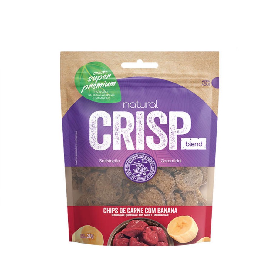 Além de ser altamente palatável, o Crisp Chips de Carne com Banana é funcional: promove a manutenção da massa muscular e a saúde digestiva graças às fibras naturais da banana. Com textura crocante, este snack é excelente como recompensa, durante o adestramento ou simplesmente para agradar seu companheiro com carinho e sabor.