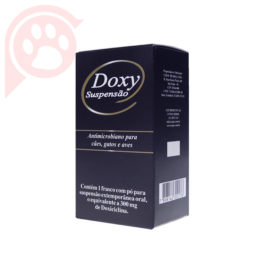 O Antibiótico Doxy Suspensão é um medicamento veterinário à base de doxiciclina, indicado para cães, gatos, aves e animais silvestres no tratamento e controle de infecções causadas por riquétsias, micoplasmas, espiroquetas e clamídias. Sua fórmula garante excelente absorção oral, rápida ação e ampla distribuição pelo organismo, alcançando coração, rins, pulmões, músculos e secreções corporais, proporcionando eficácia terapêutica superior.