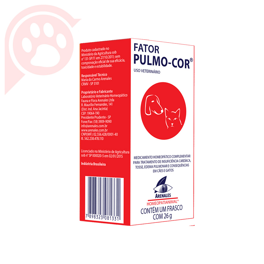 Fator Pumo-Cor é indicado como homeopatia complementar para o tratamento de Insuficiência Cardíaca, Dilatação Cardíaca, Hipertrofia Cardíaca, Frêmito (sopro cardíaco), Disritmias, Taquicardia e suas consequências pulmonares como: Congestão com Edema, Edema Pulmonar, Inflamação Pulmonar e Tosses Cardíacas.