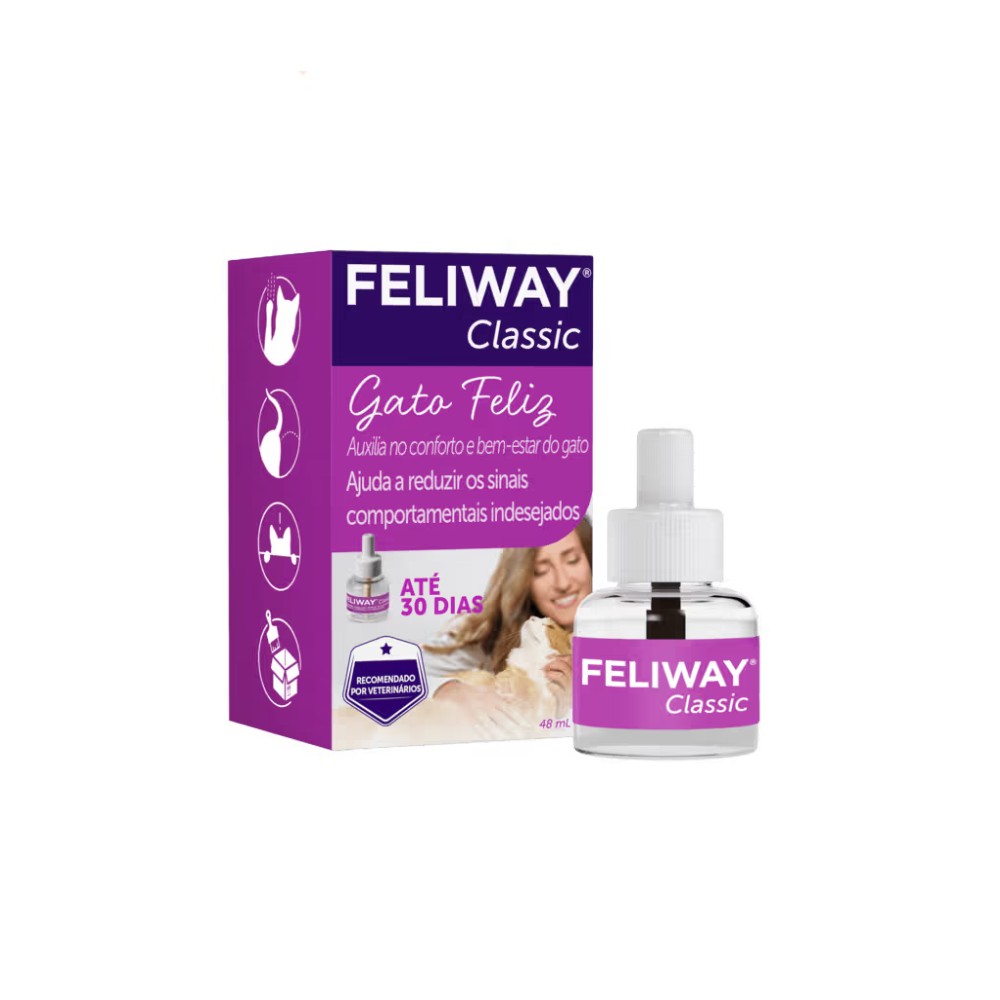 Refil Feliway Classic Difusor com Refil 48mL é a solução ideal para proporcionar conforto e tranquilidade ao seu gato em casa. Recomendado por veterinários e com eficácia clinicamente comprovada, ele ajuda a prevenir e reduzir sinais de estresse como marcação urinária, arranhões nos móveis, comportamento de se esconder e dificuldades na adaptação de novos gatos no ambiente.