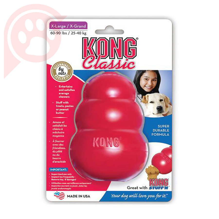Kong Classic pode ser preenchido com uma variedade de guloseimas. Experimente encher seu Kong com camadas de diferentes guloseimas para manter o seu cão ocupado quando você deixá-los sozinhos.