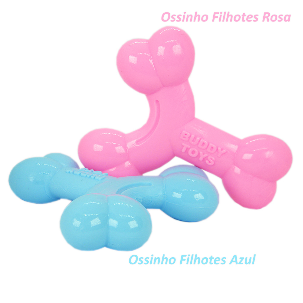 Brinquedo Buddy Bylon Ossinho Filhotes está disponível nas cores Azul e Rosa.