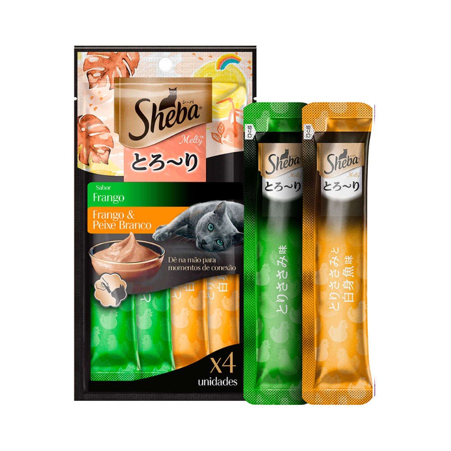 Petisco Cremoso Sheba sabor Frango e Peixe e Branco éum creme para felinos irresistível preparado cuidadosamente com ingredientes de qualidade e criados para serem oferecidos direto na boca. Torne a refeição do seu pet mais especial com esse creminho delicioso, que não contém corantes, adição de açúcar ou transgênicos. Um purê feito com ingredientes naturais, possui baixa caloria que também ajuda a manter o trato urinário dos gatos saudável devido ao alto teor de umidade.