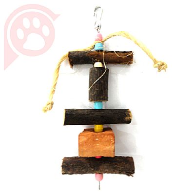 Brinquedo feito de madeira e miçangas coloridas, próprio para o pássaro se pendurar e balançar. Indicado para pássaros de porte pequeno.