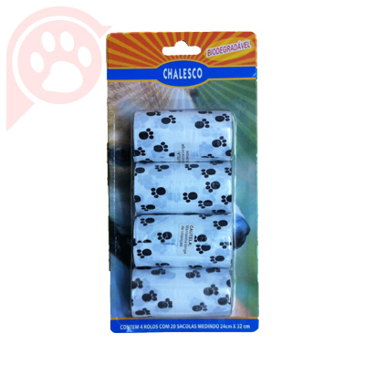 4 Bobinas Coloridas com 20 sacolas biodegradável cada.