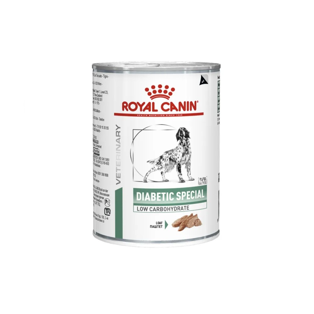 Ração Royal Canin Diabetic Special Low Carbohydrate é um alimento úmido coadjuvante indicado para cães adultos com Diabetes Mellitus, formulado para ajudar no controle da glicemia pós-prandial. Contém baixo teor de amido, alta proteína para manutenção da massa muscular e fibras, ajudando a minimizar picos de glicose e combater o estresse oxidativo.
