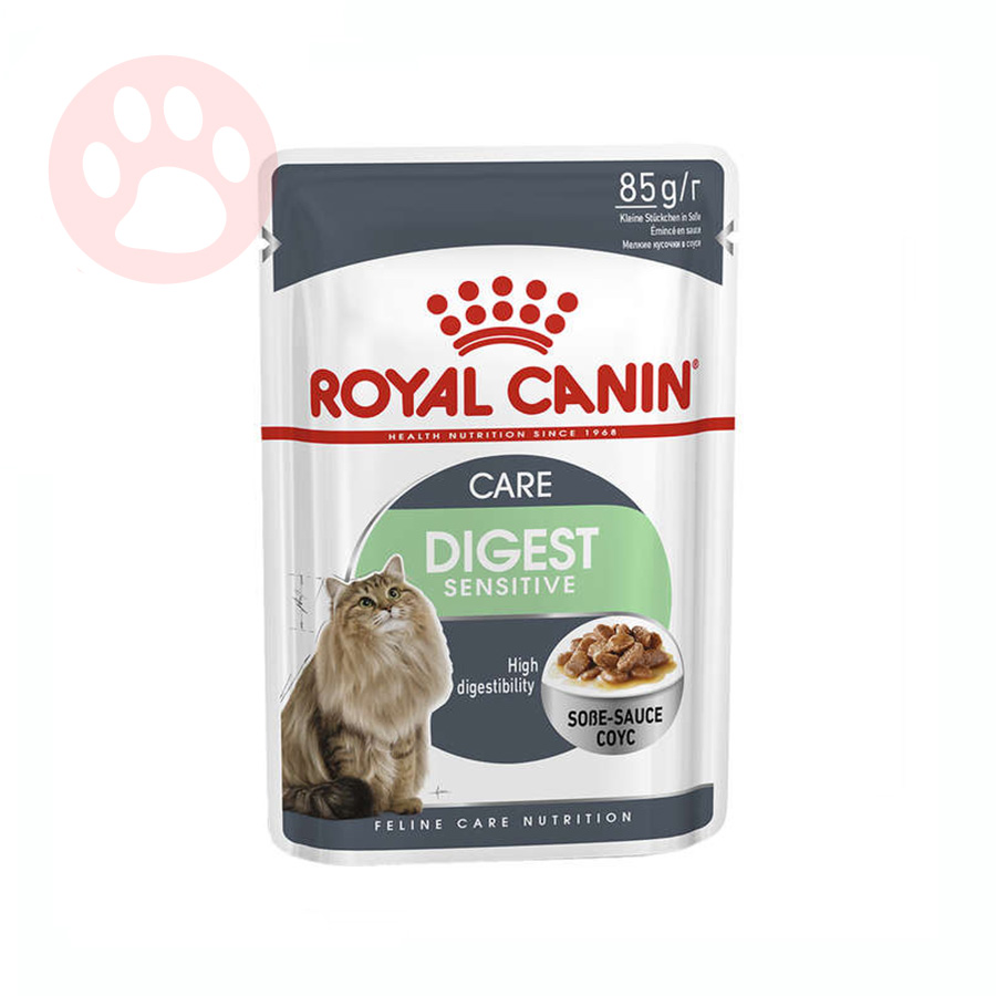 Ração Úmida Royal Canin Gatos Sachê Digest Sensitive pé completa super premium indicada para gatos adultos com tendência a uma má digestão.