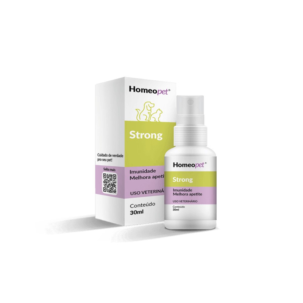Strong é um medicamento homeopático formulado para estimular o desenvolvimento e fortalecimento corporal e muscular de cães, gatos e outros animais de companhia em todas as fases da vida. Sua ação natural promove o bem-estar orgânico, melhora o desempenho físico e aumenta a resistência dos pets. Strong é ideal para animais que enfrentam atividades intensas, como cães de agility, raças de caça, guarda e pastoreio. Além disso, é um excelente auxiliar na recuperação de pets convalescentes, que passaram por cirurgias ou enfrentaram doenças graves e prolongadas. Seguro e sem contraindicações, Strong fortalece e revigora o organismo de forma eficaz.