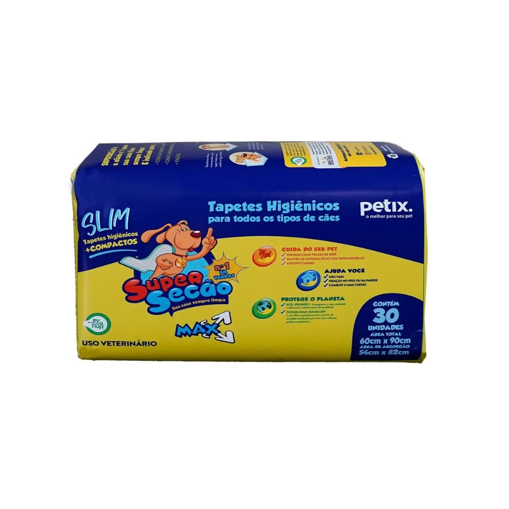 Tapetes Higiênicos Super Secão Max Slim foram desenvolvidos para oferecer praticidade e eficiência em um formato mais compacto, ideal para ambientes com menos espaço sem abrir mão da qualidade. Podem ser fixados tanto no chão quanto na parede, sendo uma excelente opção também para cães machos que costumam urinar em superfícies verticais. Contêm neutralizador de odores, que ajuda a manter o ambiente sempre agradável mesmo após o uso. Recomendados para cães de todos os tamanhos e idades.